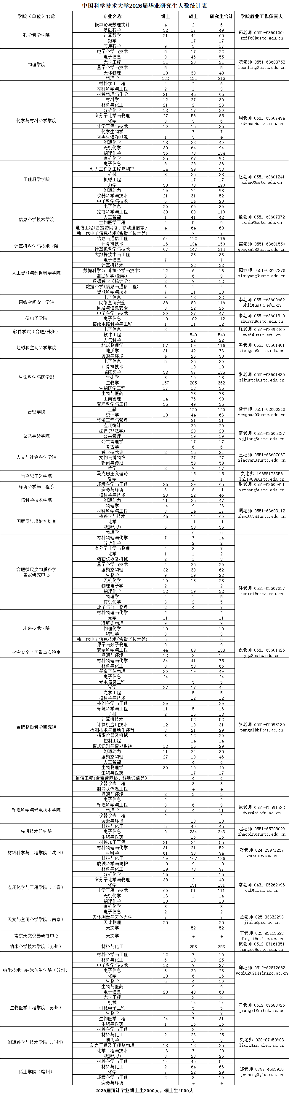 中國科學技術(shù)大學2026屆畢業(yè)研究生人數(shù)統(tǒng)計表